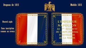 Le 1er juin 1815, au début de la période dite des cent jours, l’empereur remet une aigle et un drapeau modèle 1815 à plusieurs régiment sur le champ de Mai.